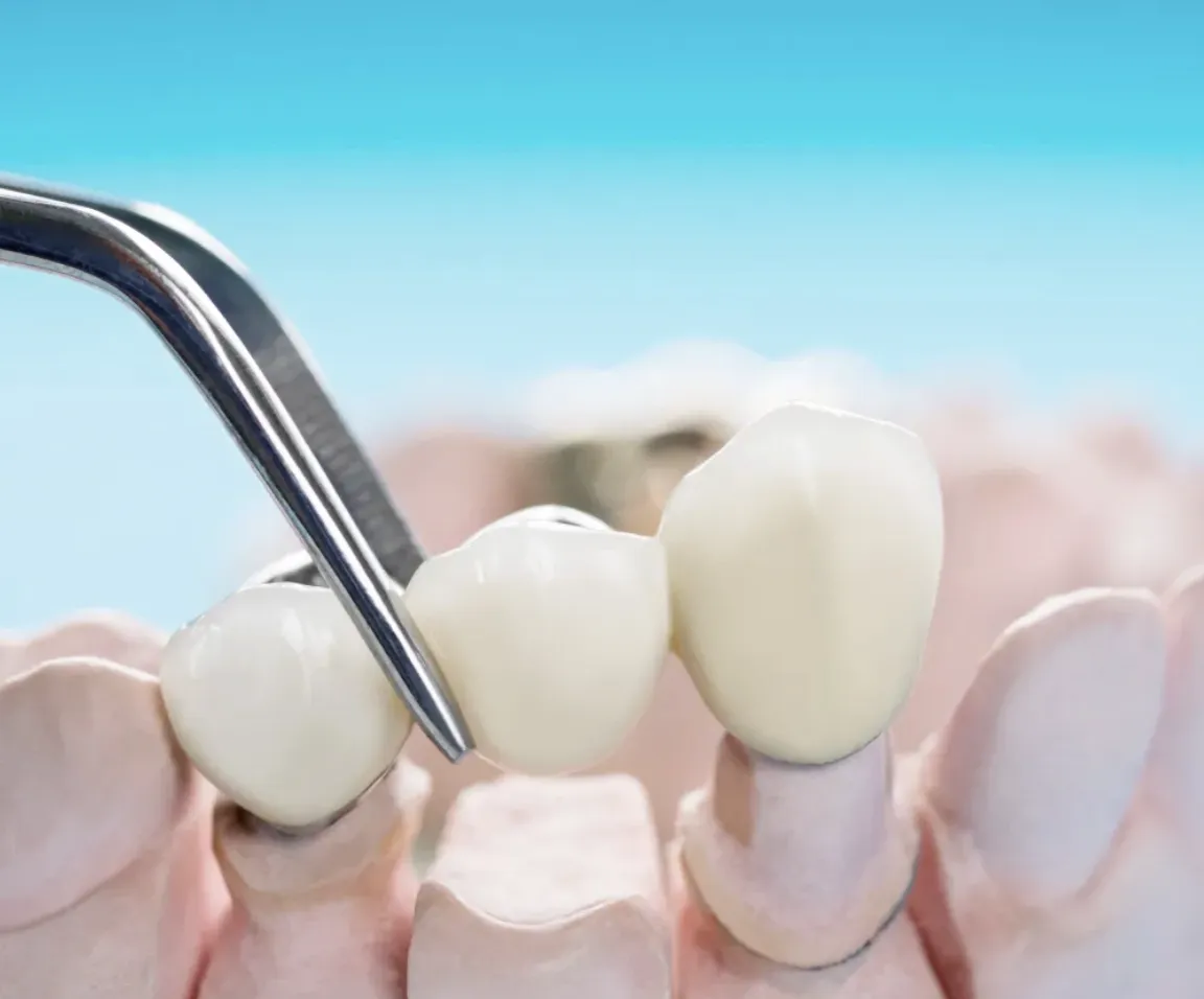 Dental crowns, also known as caps, are restorations designed to restore damaged teeth. They can be crafted from a variety of materials, including metal, porcelain, or porcelain-fused-to-metal. Crowns are commonly used to repair teeth damaged by cavities or to replace large portions of teeth lost due to injury.